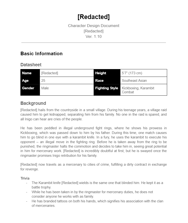 I have attached some snippets of Game Design Documents where I was involved extensively. Although I haven’t signed any NDA, I’ve redacted some info and only chose minor samples as most of these are not publicly available.